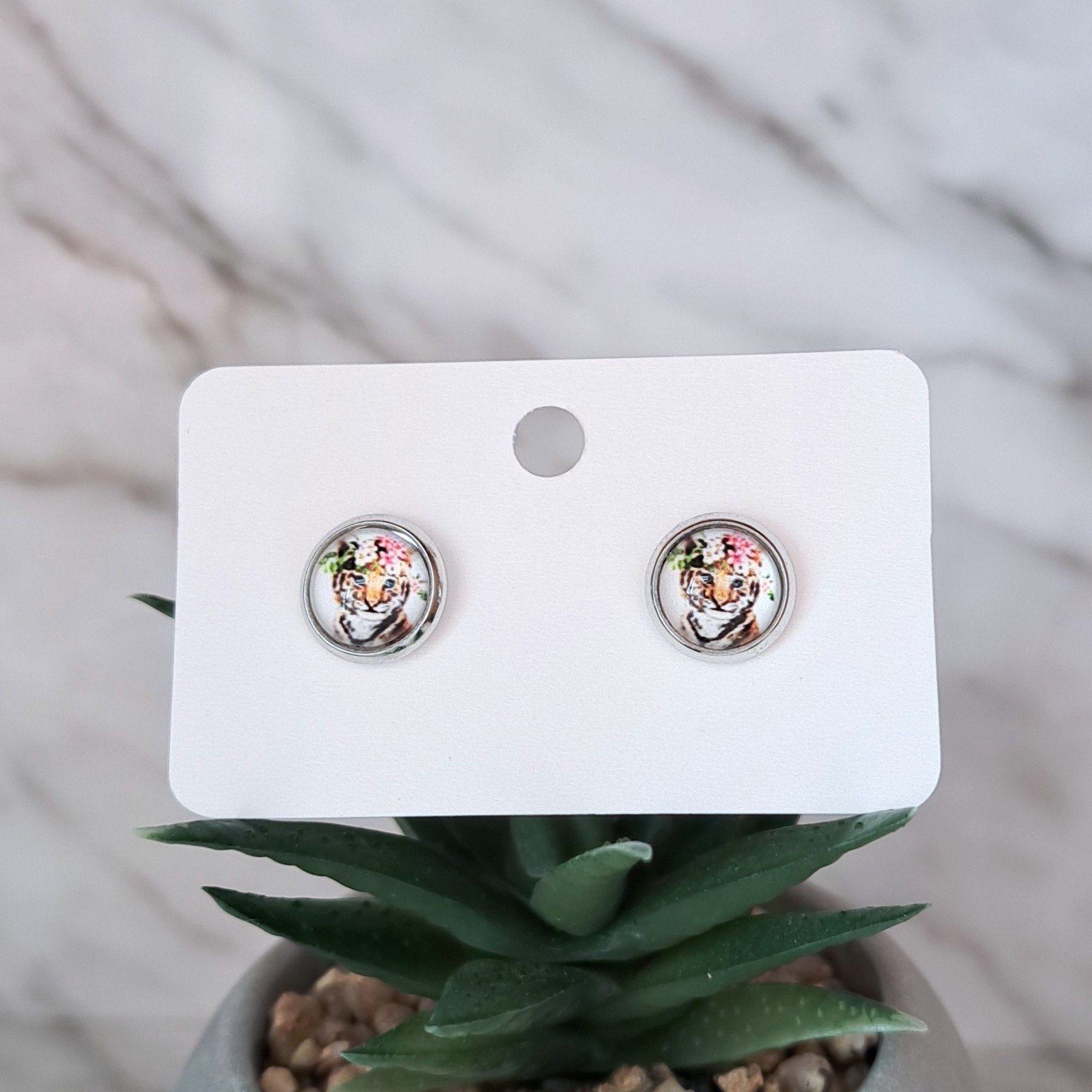 Boucles d'oreilles en acier inoxydable - Tigre