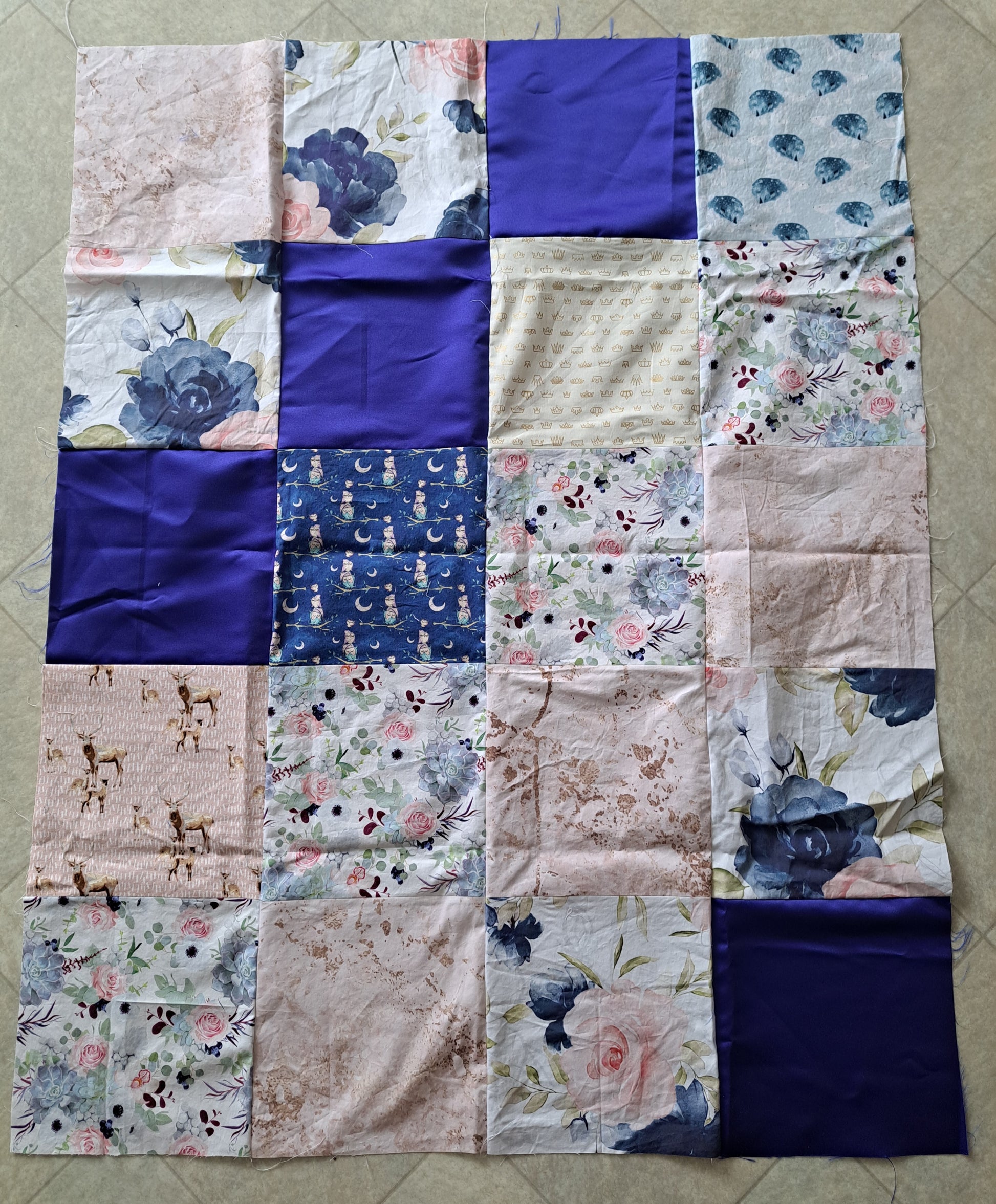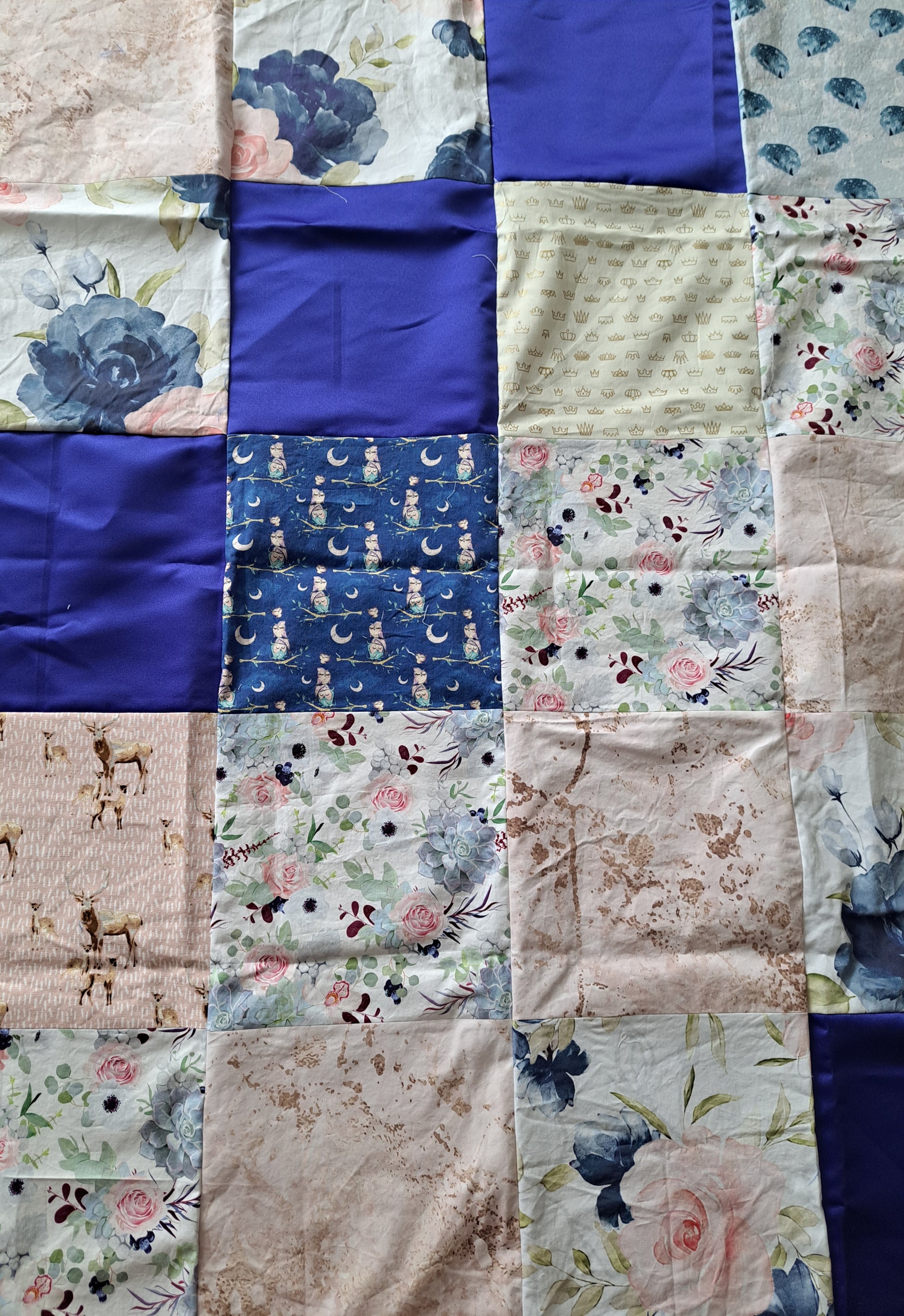 Panneau de couverture pour bébé -hiboux, fleurs